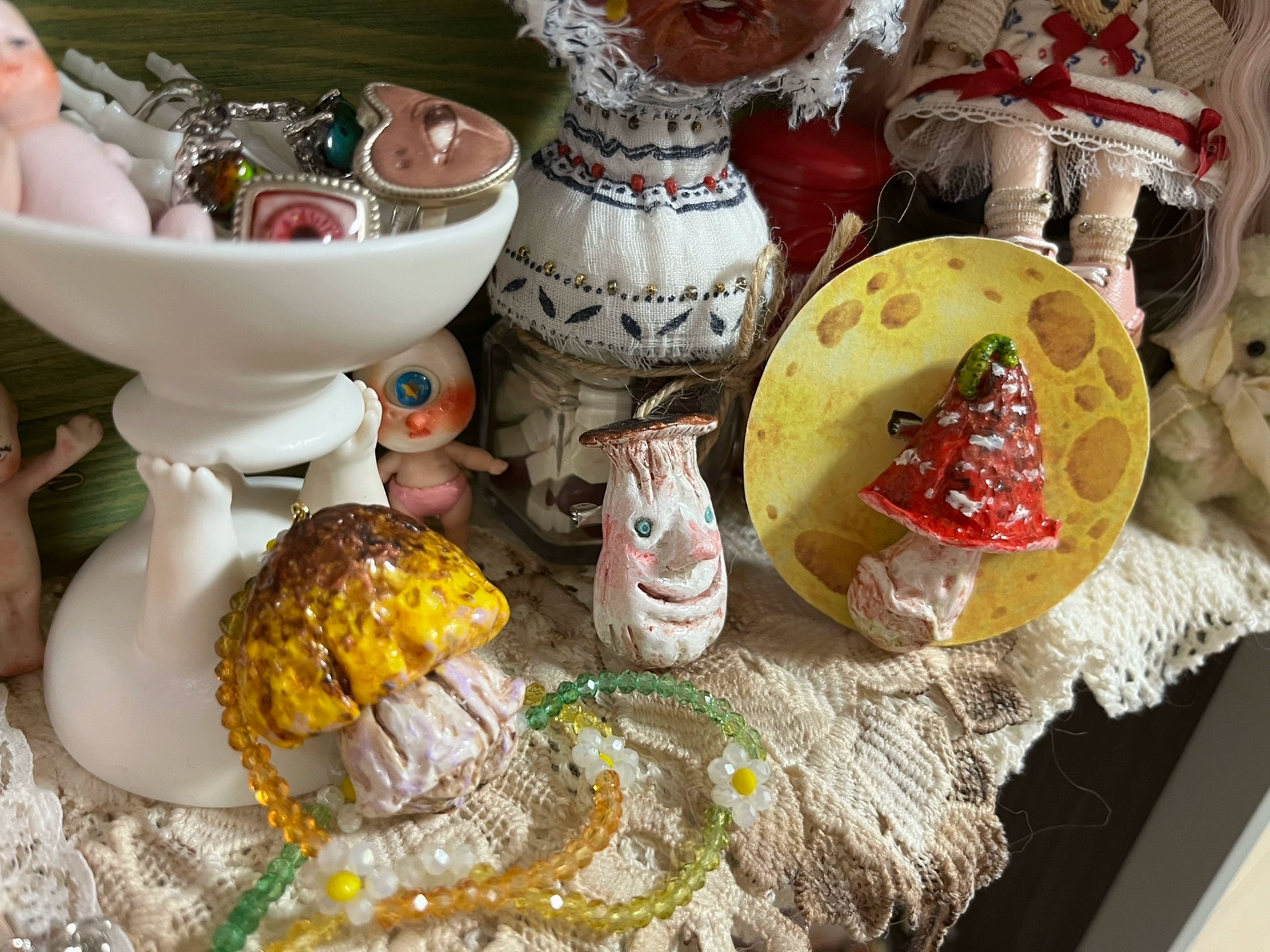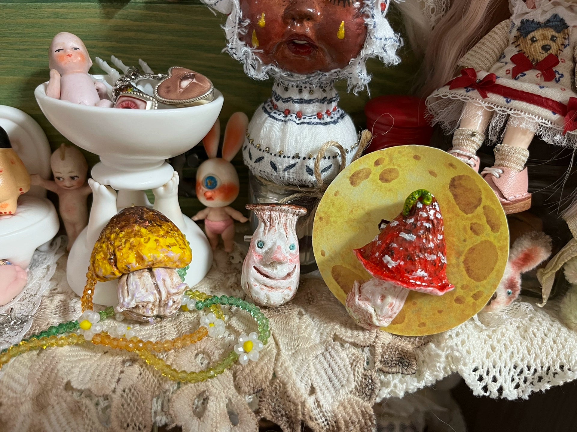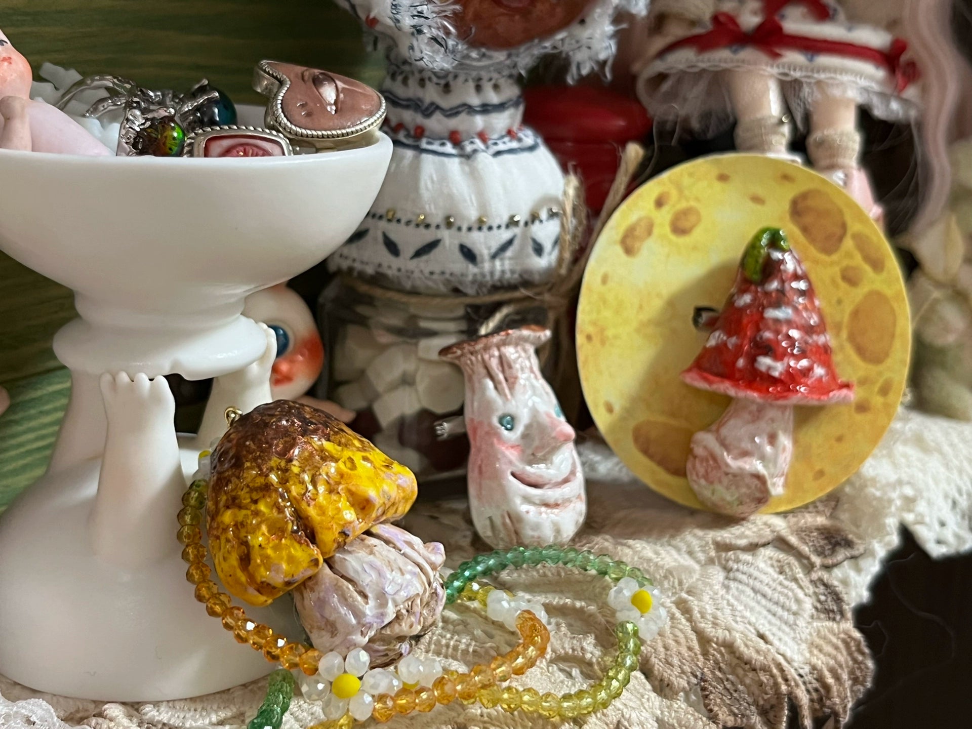 Mushroom Handmade Brooch And Necklace Set