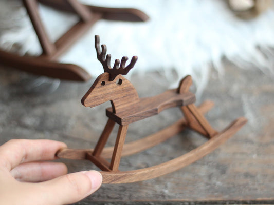Cheval en bois de noyer noir massif, produit fini