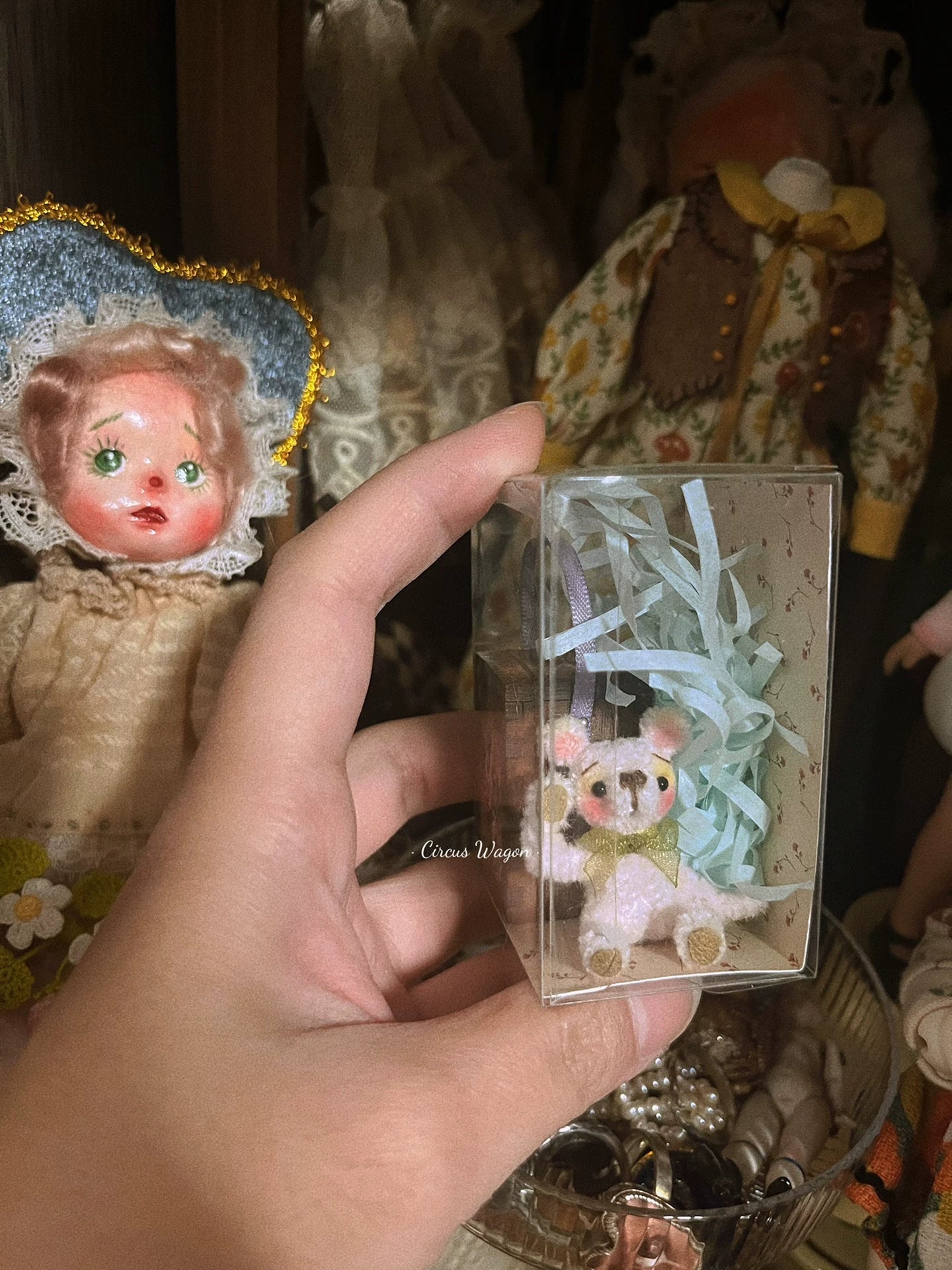Ensemble de meubles miniatures à l'échelle 1:12 : ours avec pot à biscuits peint à la main