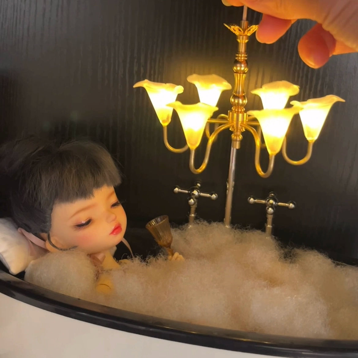 Sublimez la décoration de votre maison de poupée avec ce magnifique lustre miniature à l'échelle 1:12. Idéal pour les meubles et accessoires de poupées BJD et Blythe, ce luminaire délicat apporte une touche d'élégance à tout décor miniature. Ses détails raffinés créent un effet réaliste pour vos petites décorations.