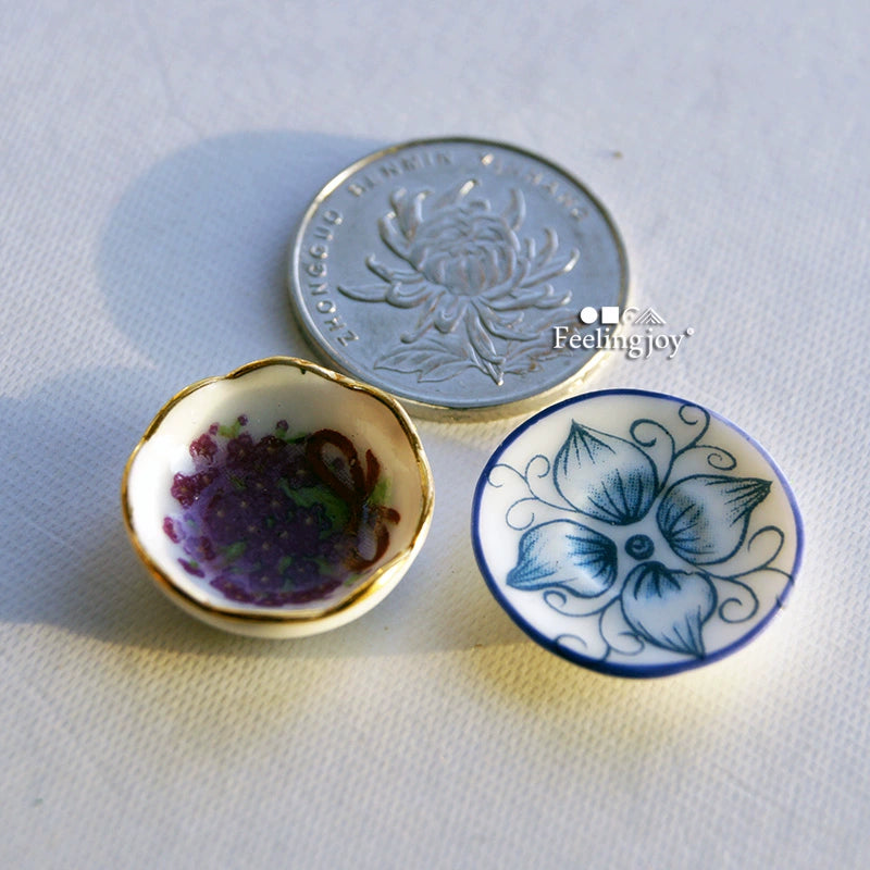 Service de table miniature en céramique pour maison de poupée à l'échelle 1:12, avec assiettes, fourchettes, cuillères et baguettes, pour un dîner romantique