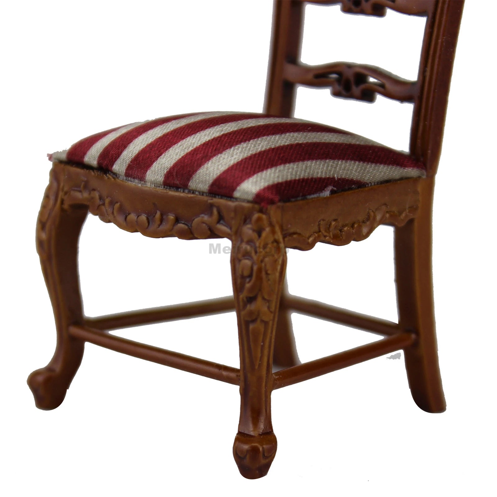 Superbe chaise de salle à manger miniature à l'échelle 1:12, en noyer authentique sculpté à la main. Parfaite pour les collectionneurs et les passionnés de maisons de poupées à la recherche de meubles réalistes et de qualité. Cette chaise finement détaillée ajoute une touche d'élégance à toute salle à manger miniature.
