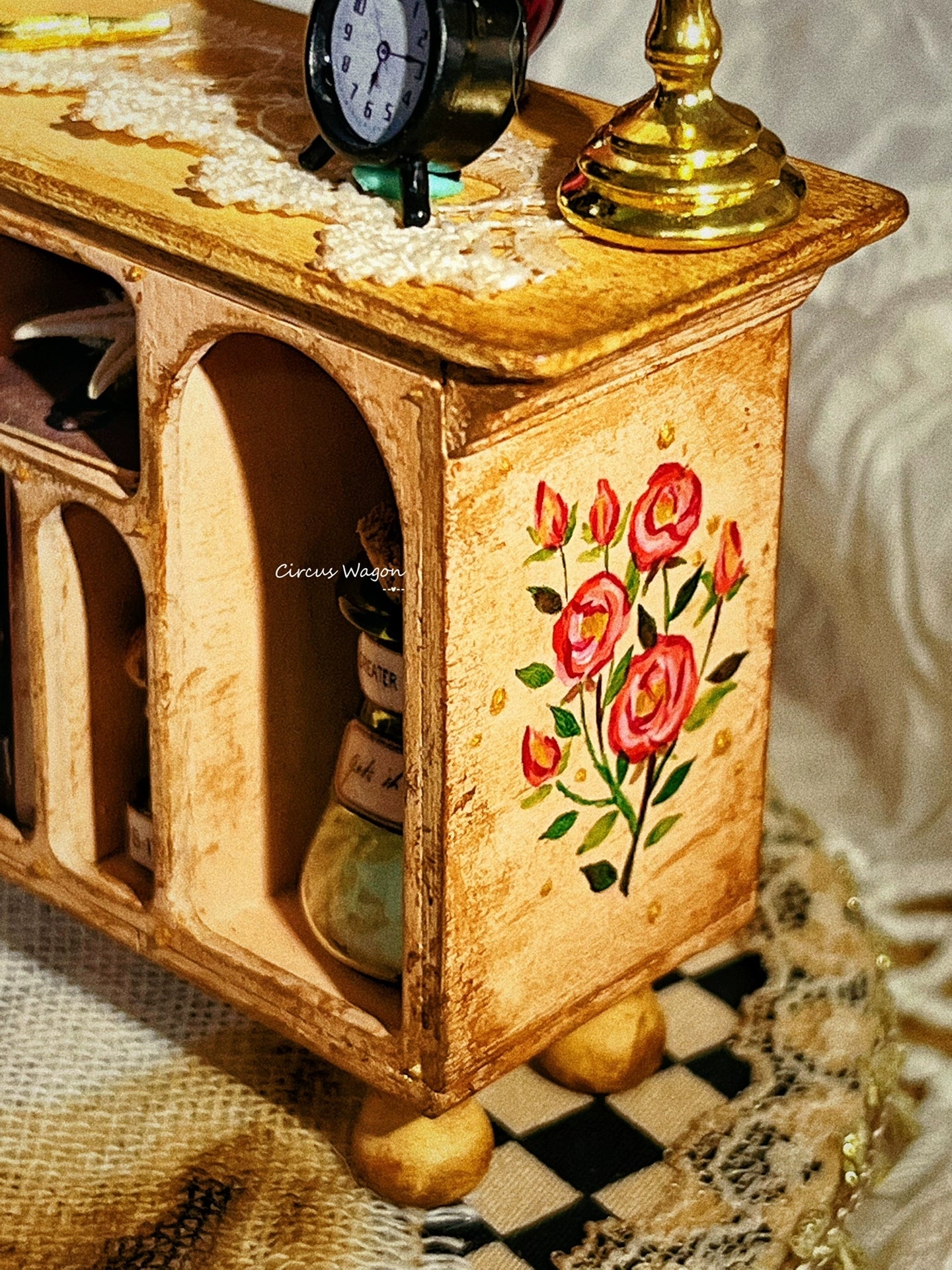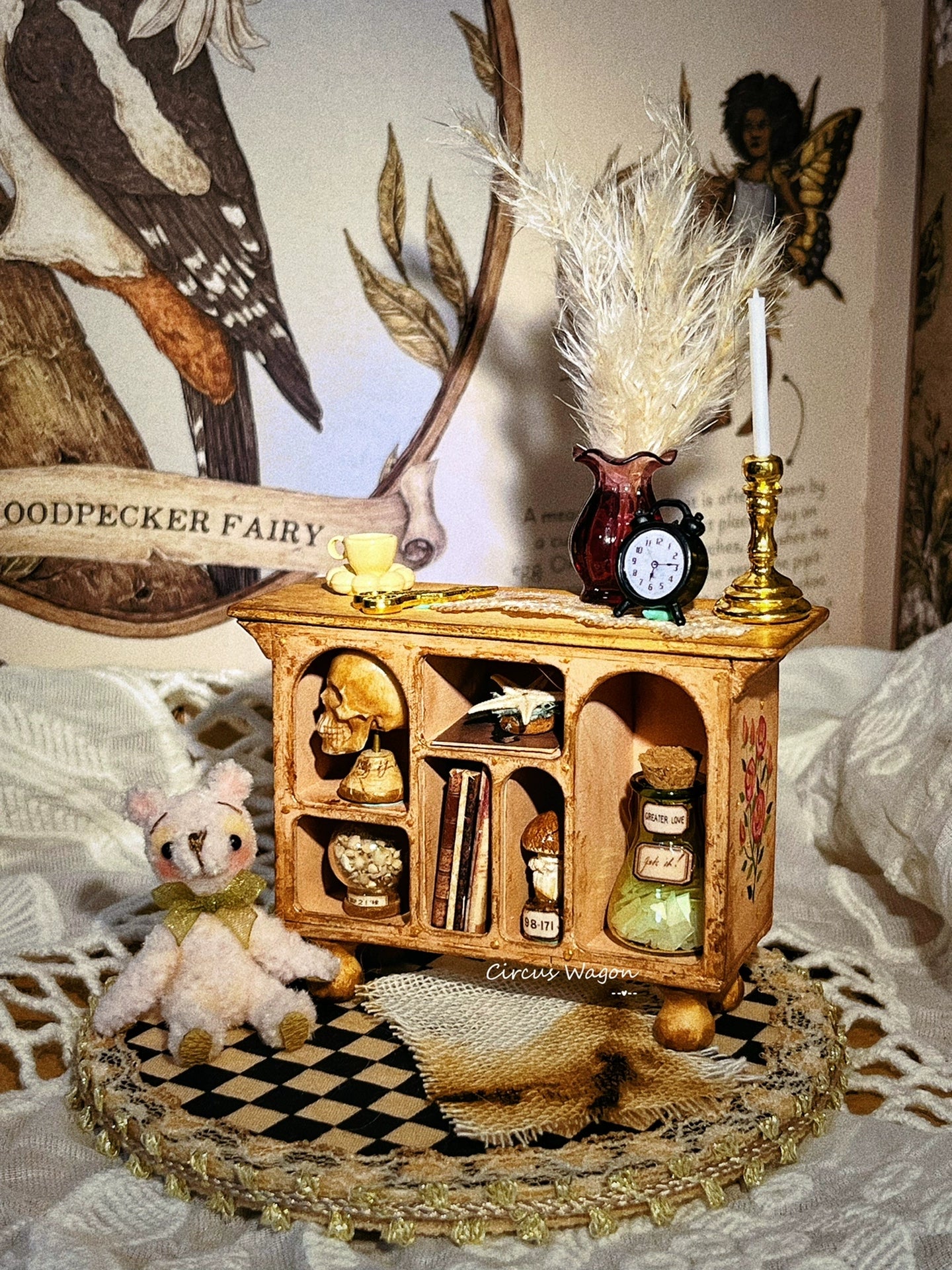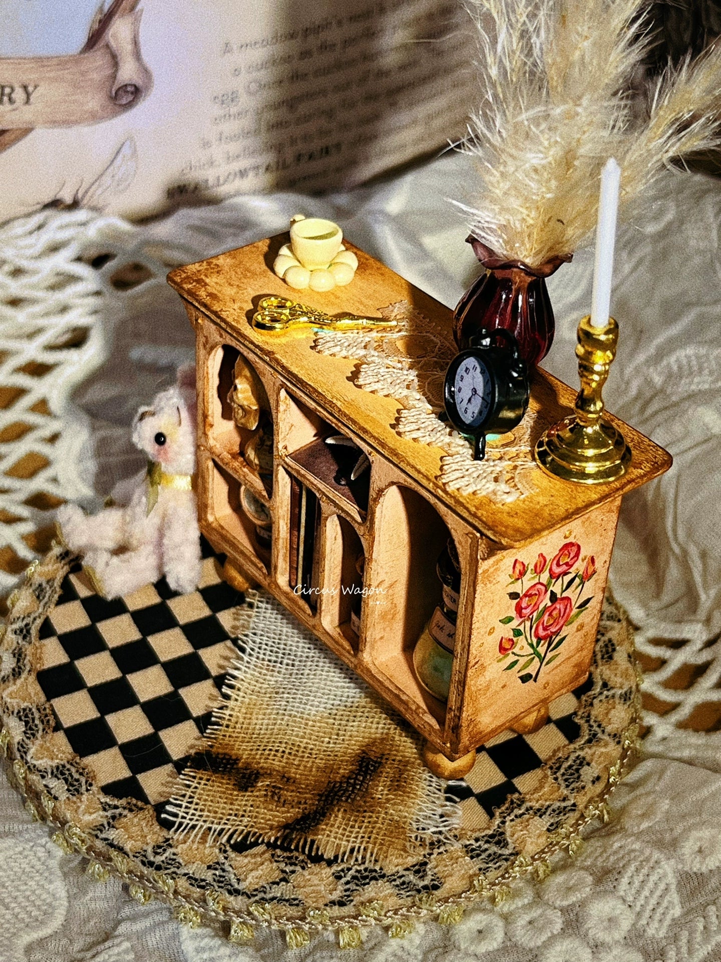 Meubles de maison de poupée miniatures, objets de collection à l'échelle 1:12, armoire en bois peinte à la main, accessoires de poupée de style vintage, ensemble de scènes compatible OB11.
