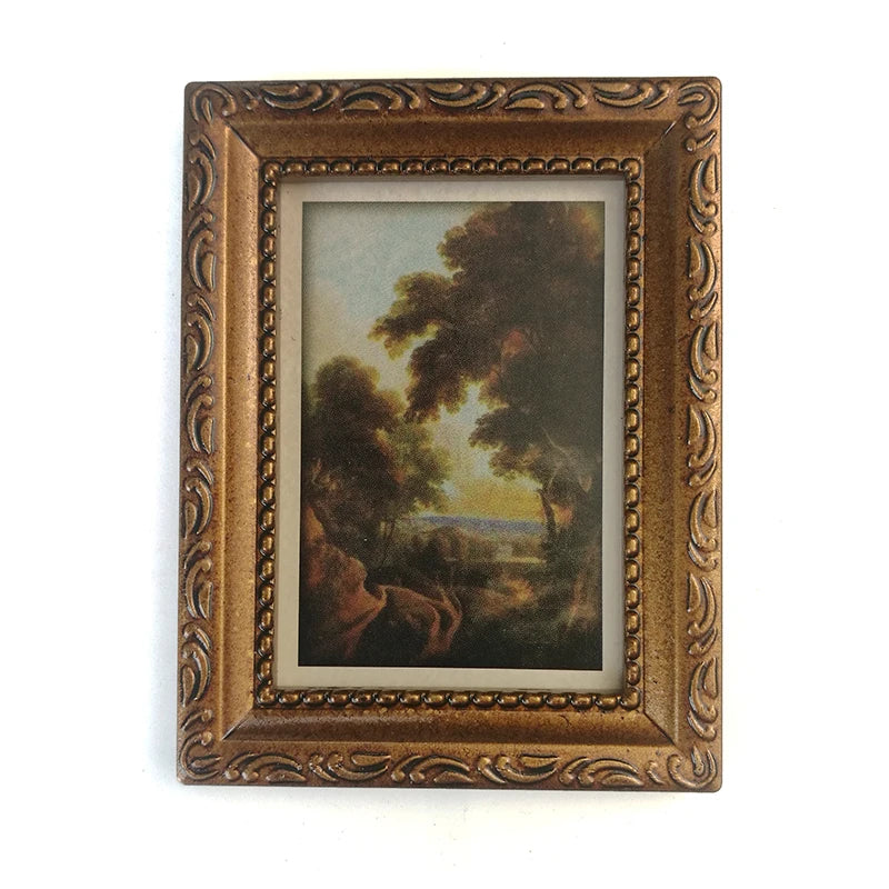 Sublimez votre maison de poupées avec cette magnifique peinture à l'huile miniature encadrée à l'échelle 1:12. Parfait pour ajouter une touche d'élégance à vos décorations murales, cet accessoire DIY détaillé présente des coups de pinceau classiques dans un cadre décoratif. Idéal pour les collectionneurs et les amateurs en quête d'une décoration authentique pour maison de poupées.