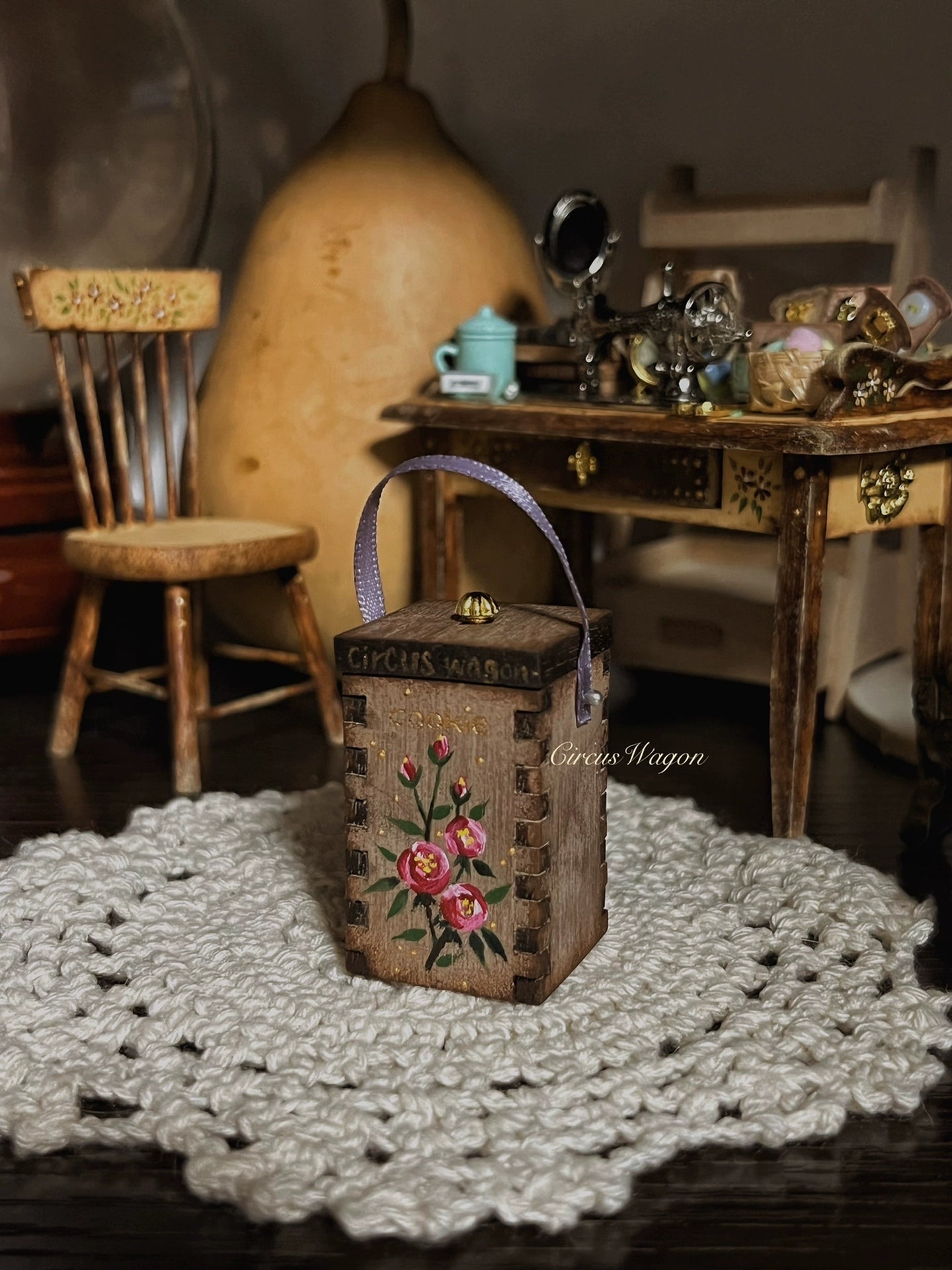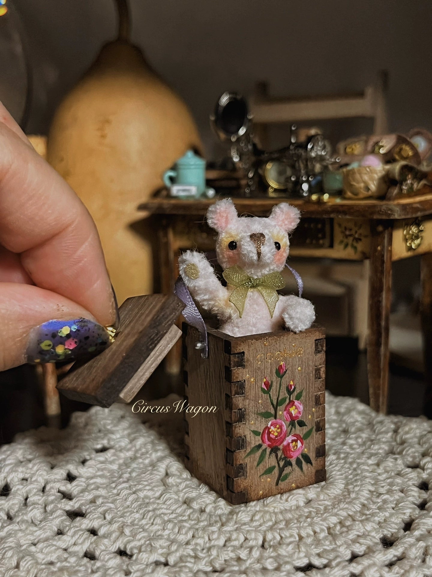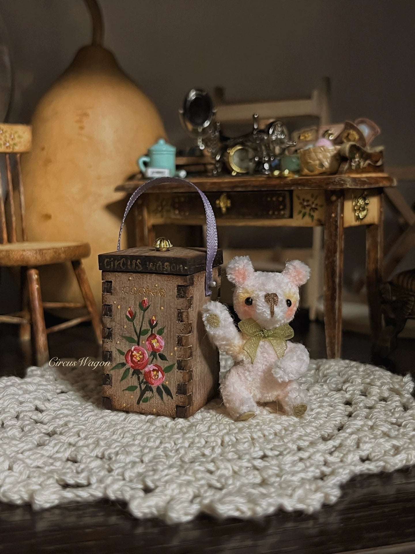 Meubles miniatures à l'échelle 1:12 Ours avec pot à biscuits peint à la main Maison de poupée miniature