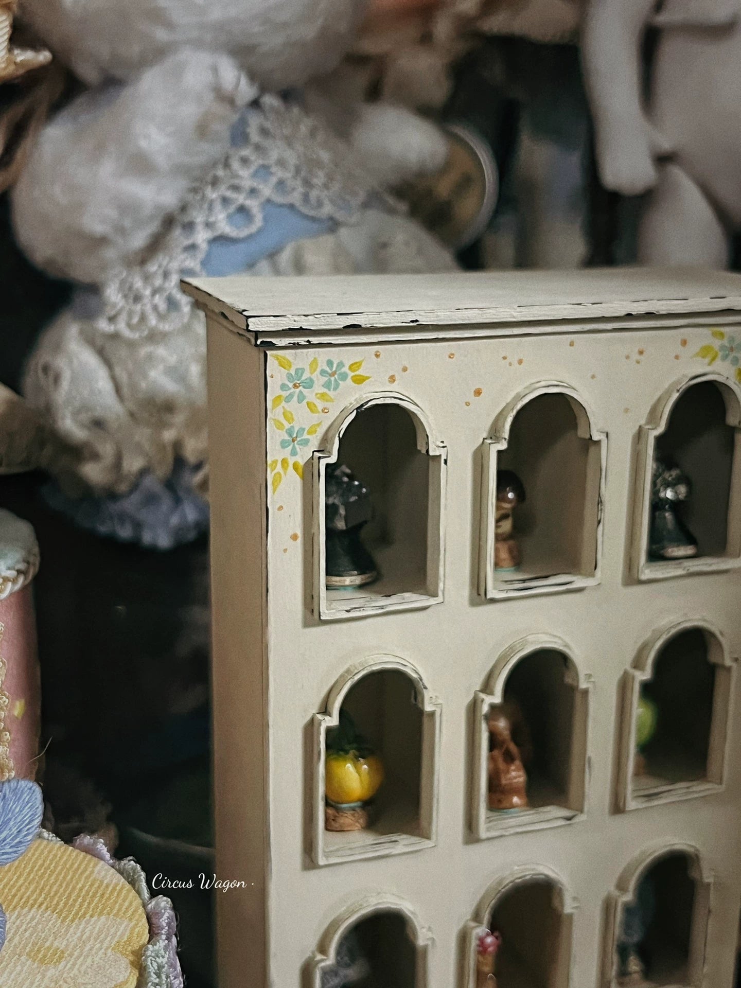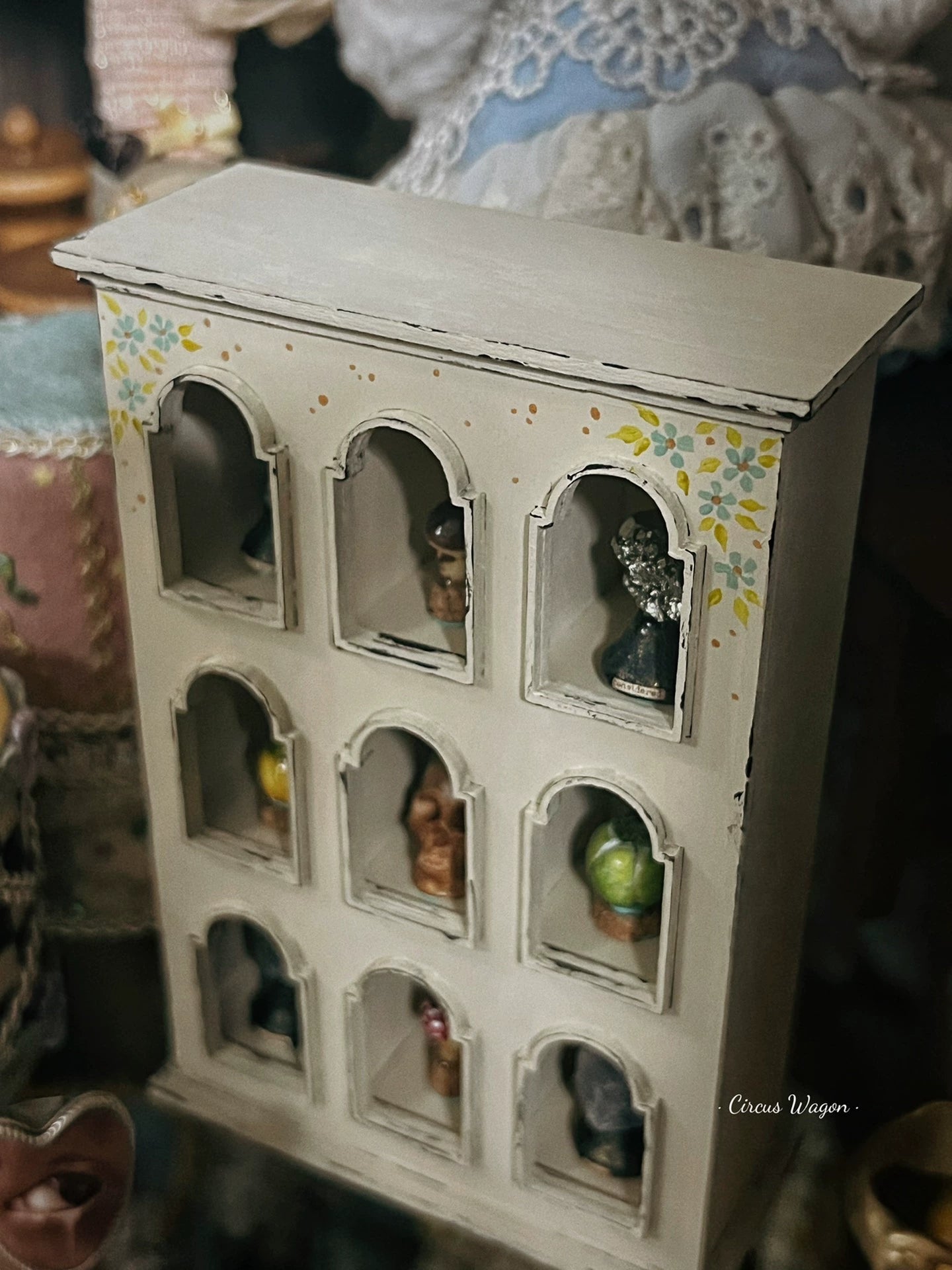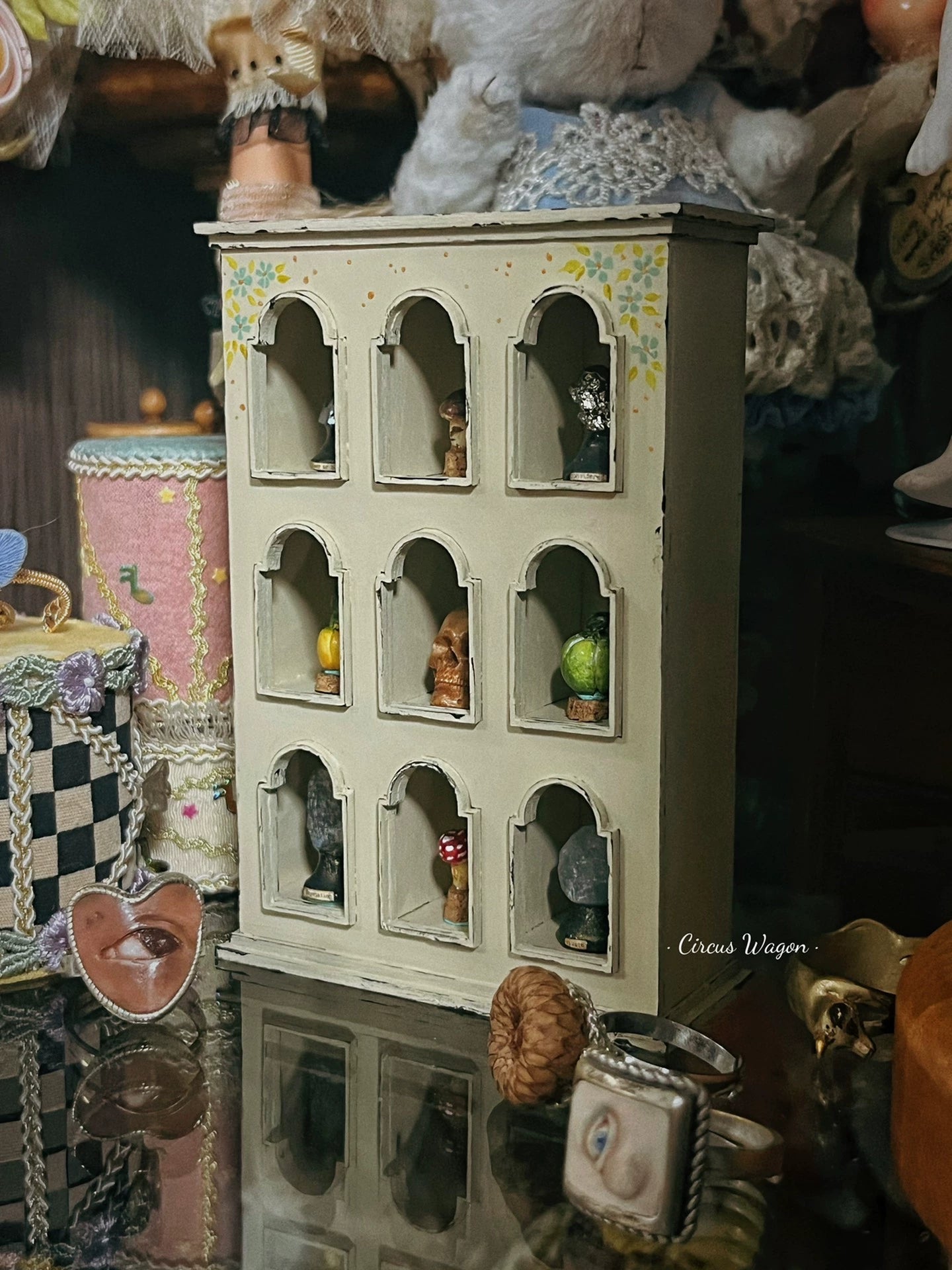 Vitrine miniature en minéraux à l'échelle 1:12, blanc ivoire, bord vieilli, meubles miniatures pour maison de poupée