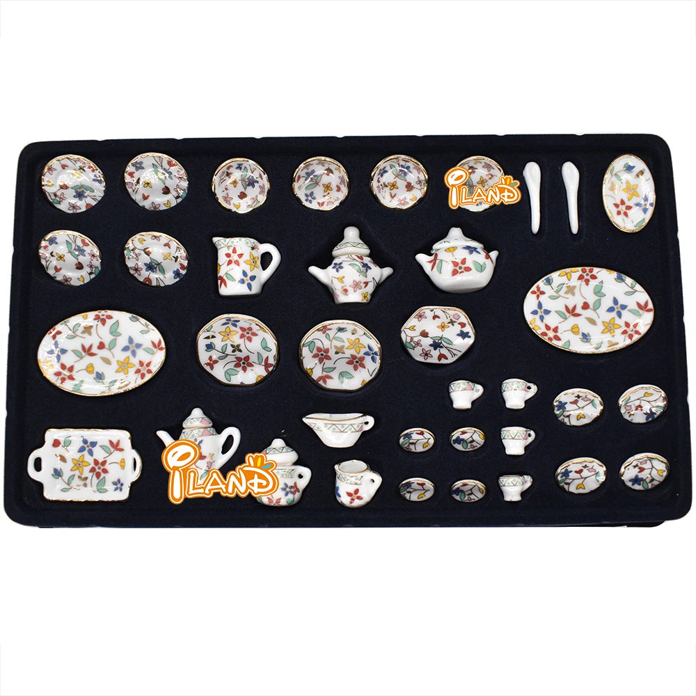 This exquisite 1:12 scale miniature porcelain tea set is perfect for dollhouse kitchen and dining room displays. Featuring delicate detailing and authentic design, this charming dollhouse furniture accessory adds elegance to any miniature scene. Ideal for collectors and hobbyists looking to enhance their dollhouse decor with realistic dining room accessories.