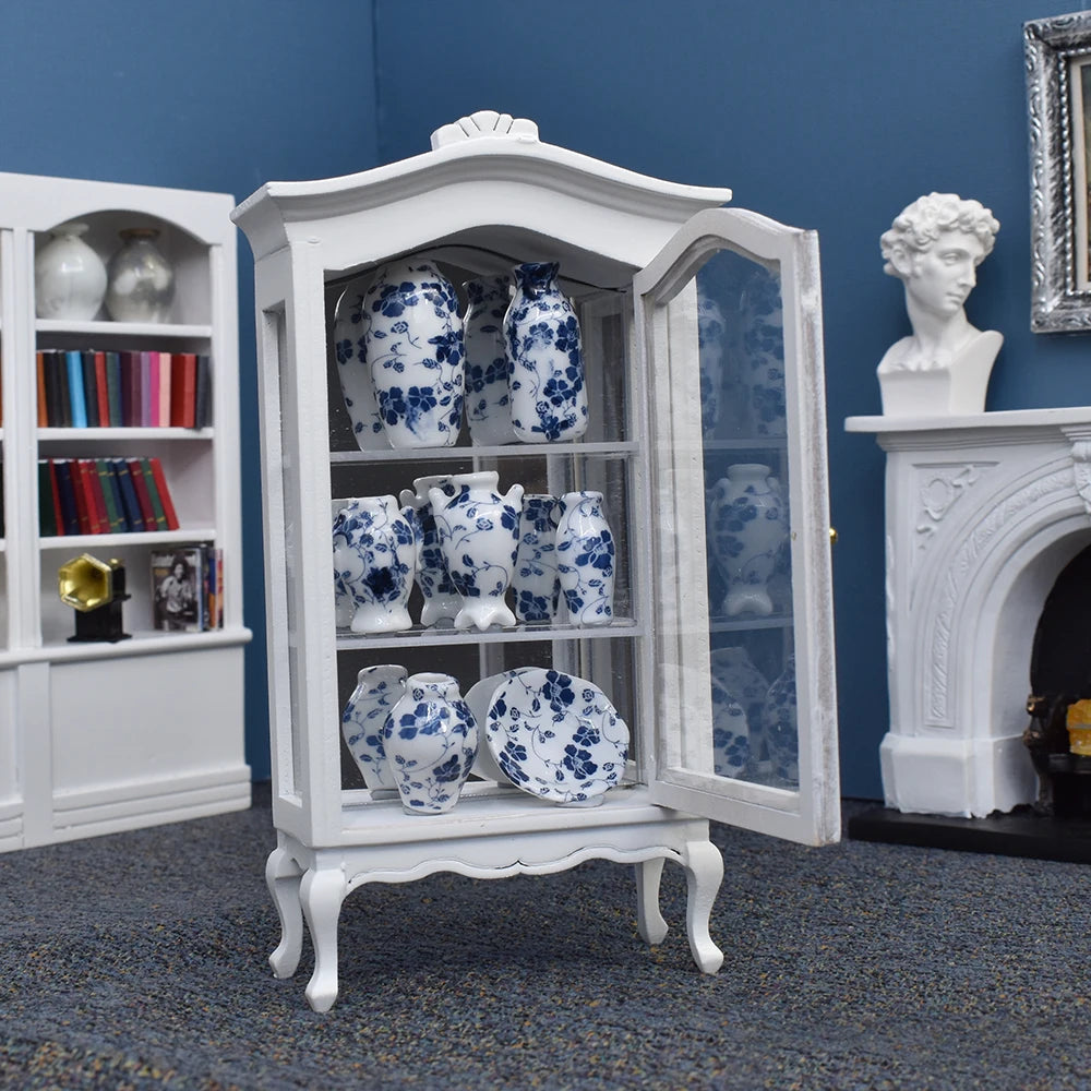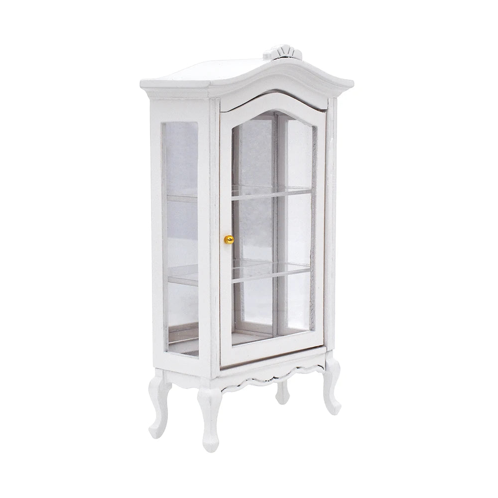 This exquisite 1:12 scale miniature white cabinet is perfect for dollhouse displays. Featuring intricate craftsmanship, this display cupboard shelf showcase adds elegant storage to any miniature scene. Ideal for collectors and hobbyists seeking detailed dollhouse furniture accessories.