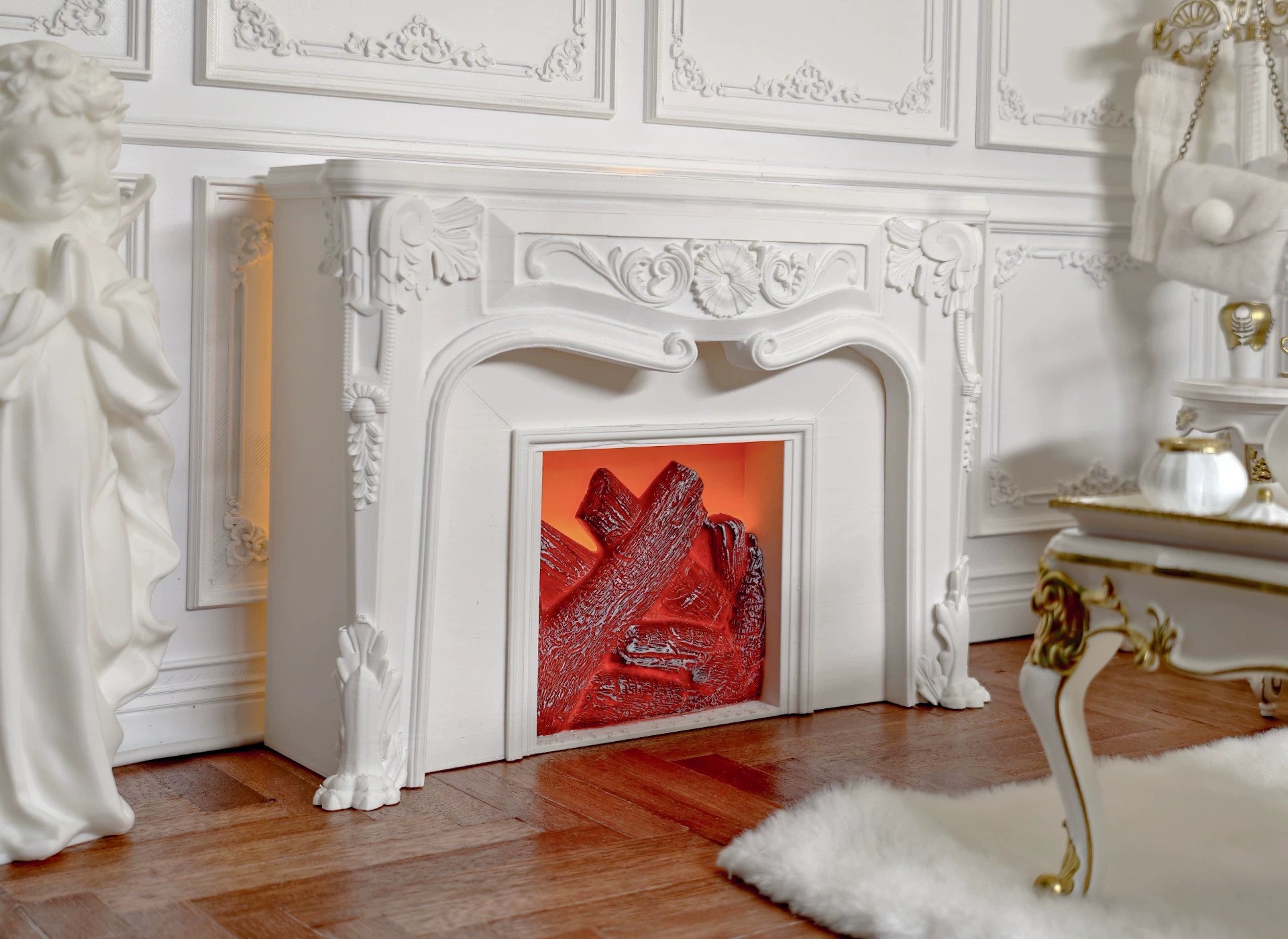 Meubles de maison de poupée miniatures, cheminée de style européen pour poupées à rotule à l'échelle 1:6, matériau PLA mat avec éclairage fonctionnel.