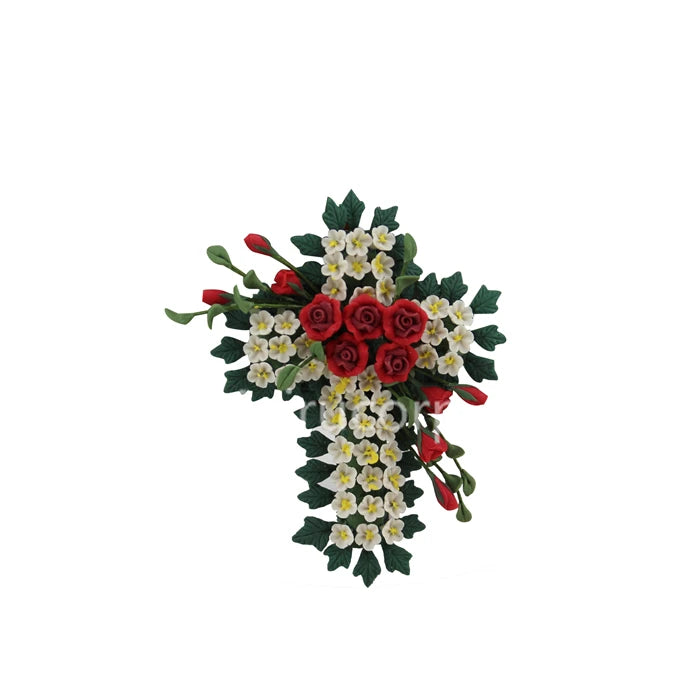 Couronne de fleurs en argile faite à la main à l'échelle 1:6, décoration miniature pour maison de poupée, arrangement floral en forme de croix