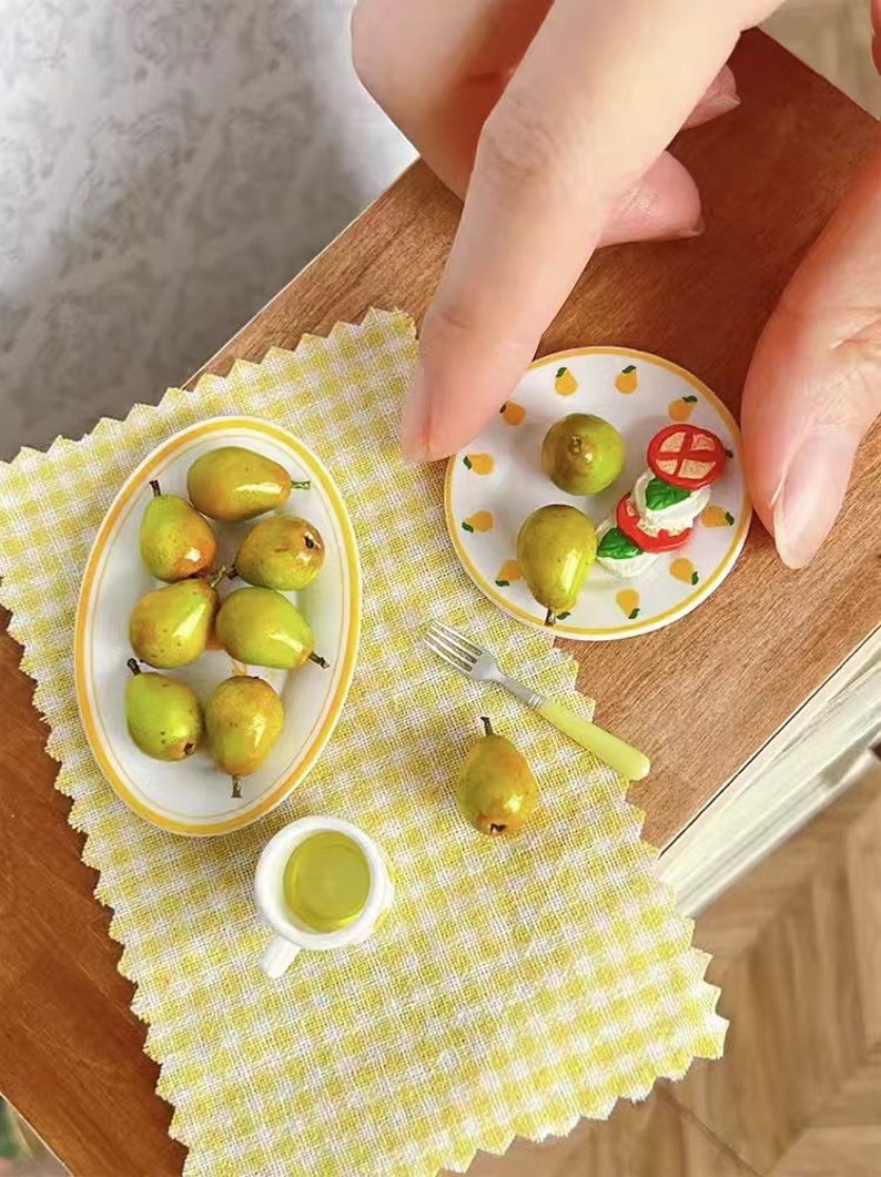 Sublimez votre maison de poupée ou vos scènes BJD avec cet ensemble de fruits miniatures en argile à l'échelle 1:6. La collection comprend des morceaux réalistes de pastèque, de kaki, de citron, de poire et de pamplemousse, parfaits pour ajouter des détails réalistes à vos miniatures. Fabriqués à la main avec soin, ces petits fruits en argile sont de charmants accessoires pour les collectionneurs et les amateurs.