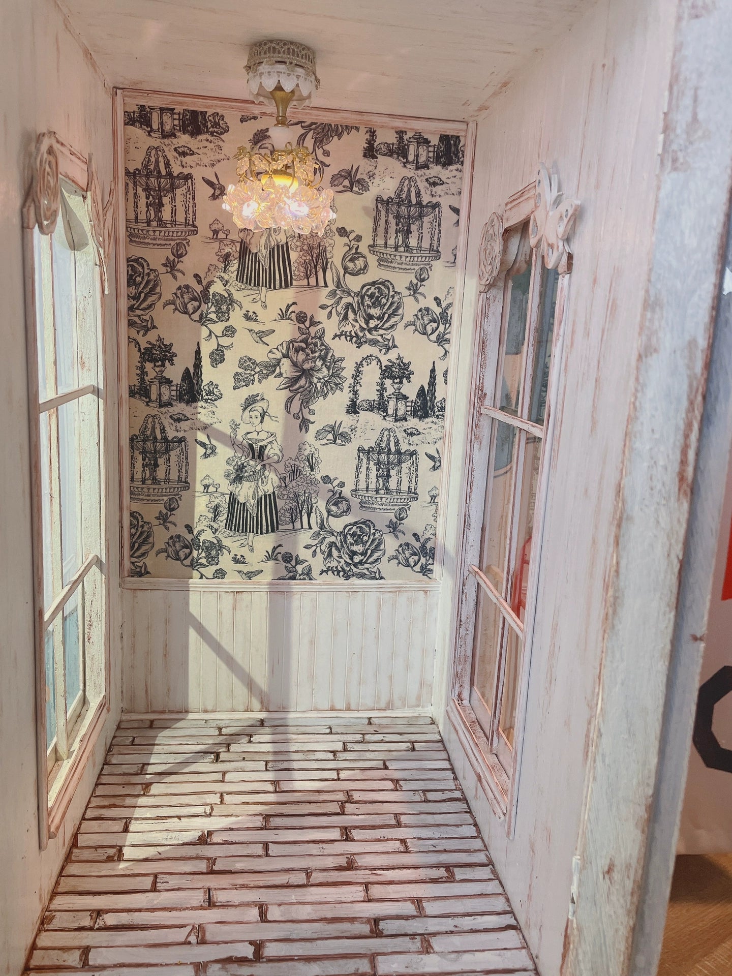 Vitrine miniature pour maison de poupée Blythe, échelle 1:6, motif rose rétro