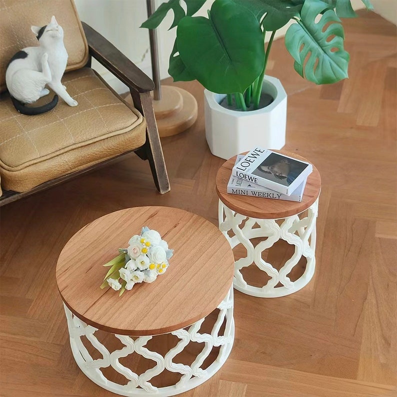 Sublimez votre maison de poupée ou votre exposition BJD avec ce magnifique ensemble de deux tables basses rondes creuses. Parfaitement dimensionnées à l'échelle 1:6 pour des configurations miniatures réalistes, ces élégantes tables complètent parfaitement les collections de poupées Blythe, GSC et autres. Leur design creux délicat ajoute une touche de sophistication à toute maquette de bureau ou à tout aménagement de meubles de poupée.