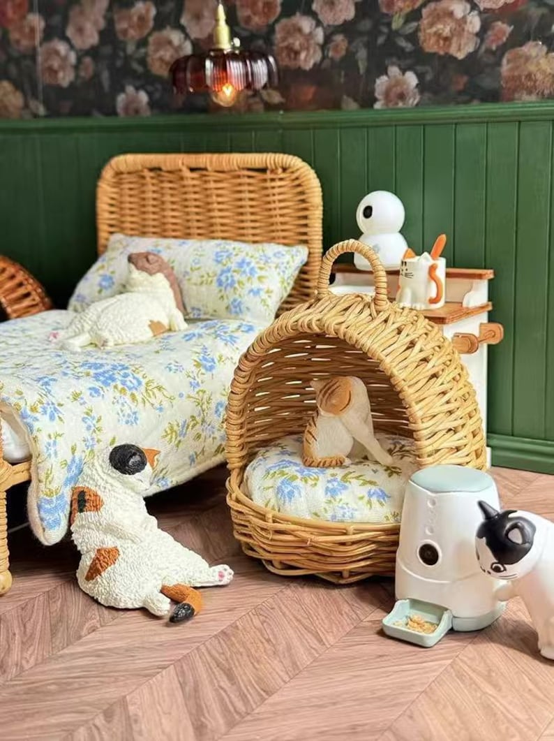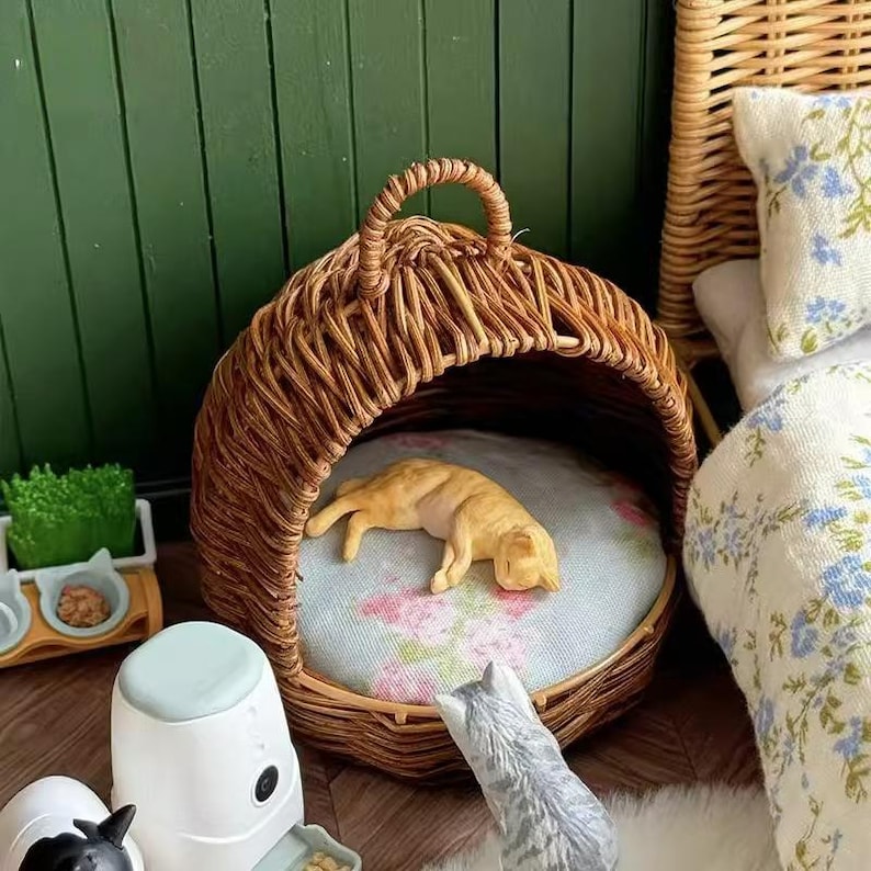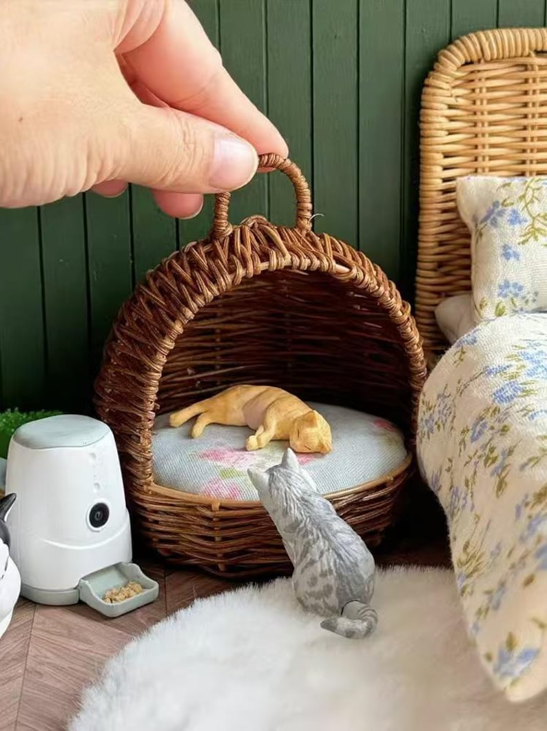 Ce magnifique nid pour chat et mangeoire miniature en vigne tressée à l'échelle 1:6 est l'accessoire idéal pour les maisons de poupées BJD, Blythe et GSC. Fabriqué à la main avec des détails complexes, ce charmant ensemble ajoute un charme réaliste à l'univers de votre poupée.