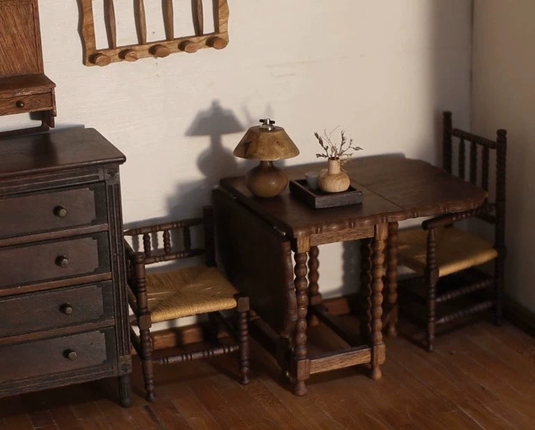 This exquisite 1:6 scale walnut woven edge chair brings elegance to any dollhouse setting. Featuring realistic woven detailing and rich walnut finish, this miniature furniture piece perfectly complements Victorian or modern dollhouse interiors. Ideal for collectors and hobbyists seeking high-quality dollhouse accessories.