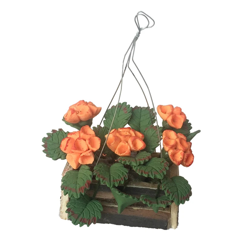 Enhance your dollhouse with this exquisite 1:12 scale miniature hanging basket featuring vibrant orange hydrangea flowers. Handcrafted from delicate clay, this charming plant adds realistic floral detail to any dollhouse or miniature garden scene. Perfect for collectors and hobbyists seeking authentic miniature decor.