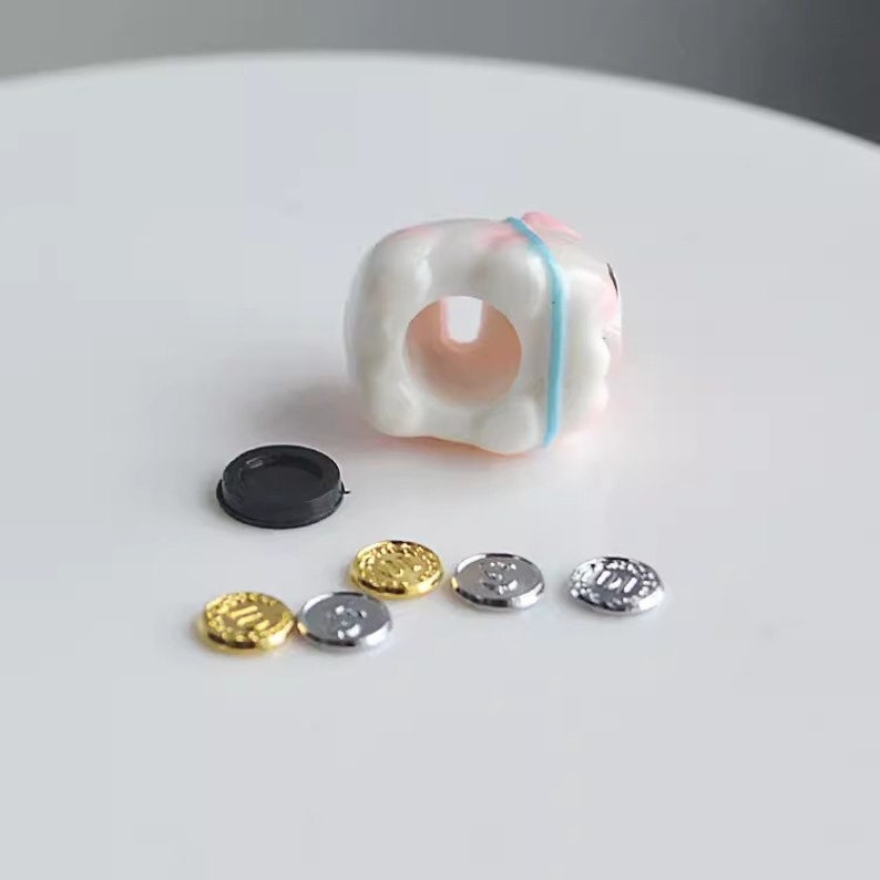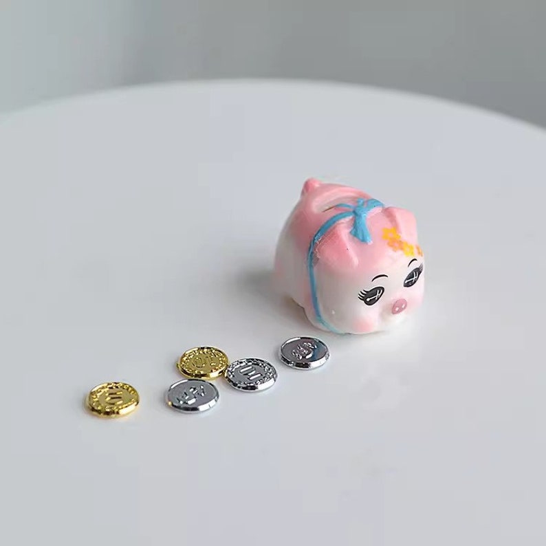 This 1:12 scale miniature piggy bank features realistic gold and silver coins, perfect for BJD, Blythe, and GSC dollhouse scenes. A charming desktop accessory that adds playful detail to any miniature collection or doll display. Ideal for hobbyists and collectors seeking high-quality dollhouse decorations.