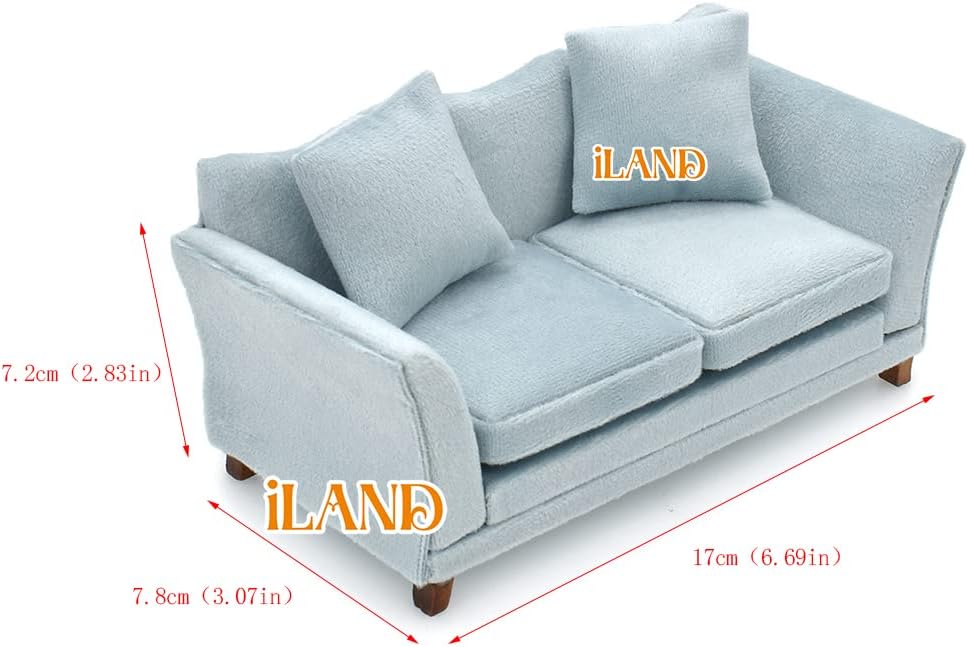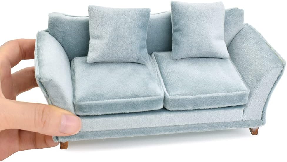 Enhance your dollhouse living room with this exquisite 1:12 scale miniature sofa. Featuring a light sky blue velvet upholstery, this modern dollhouse furniture piece adds elegance to any miniature setting. Perfect for collectors and hobbyists seeking detailed, realistic dollhouse accessories.
