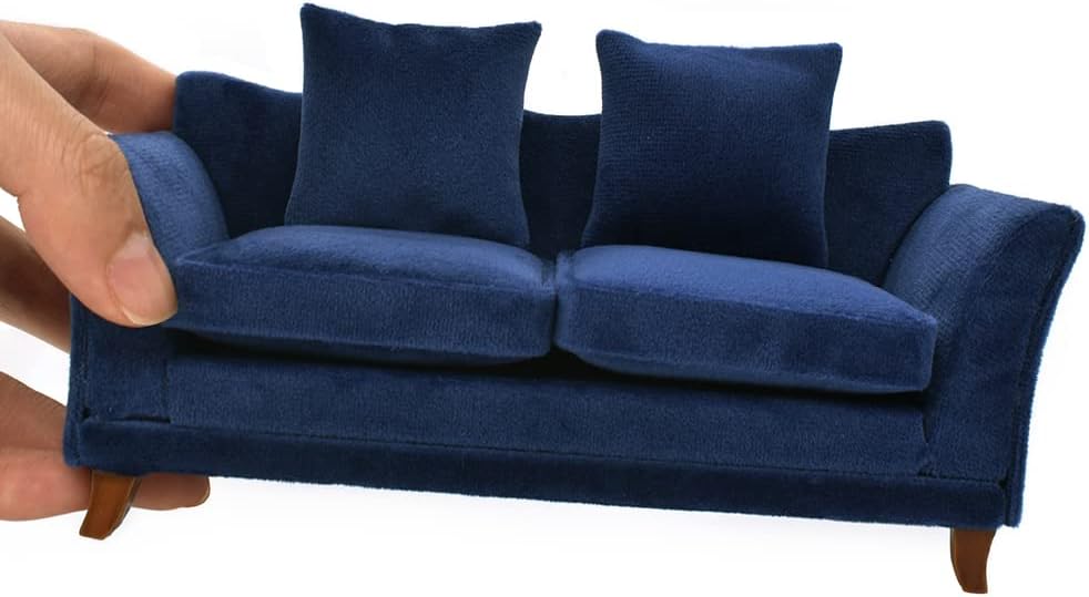 Enhance your dollhouse with this exquisite 1:12 scale miniature sofa featuring luxurious turquoise blue velvet upholstery. Perfectly sized for dollhouse living rooms, this modern furniture piece adds elegant charm to any miniature setting. The detailed craftsmanship and vibrant color make it a standout accessory for collectors and hobbyists alike.