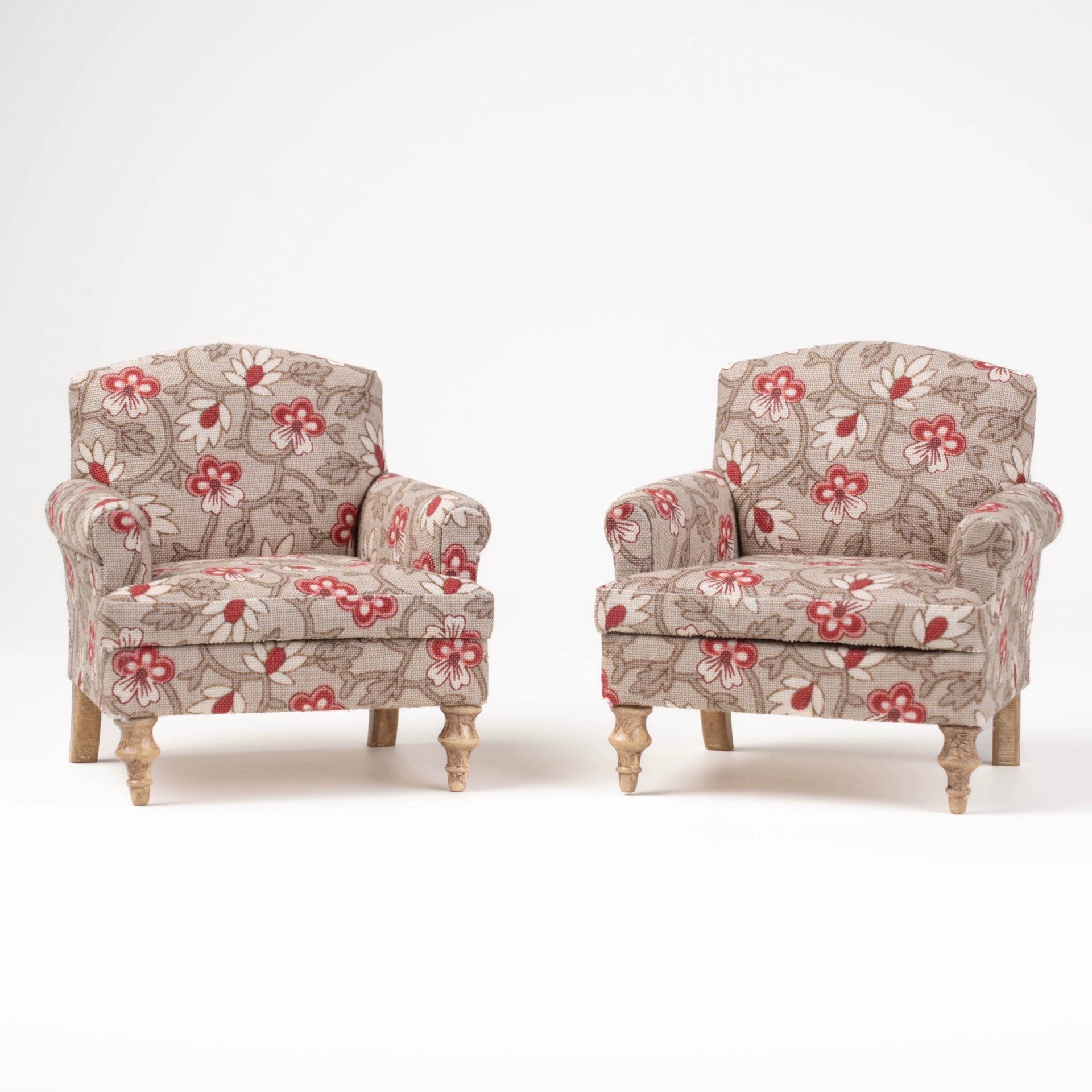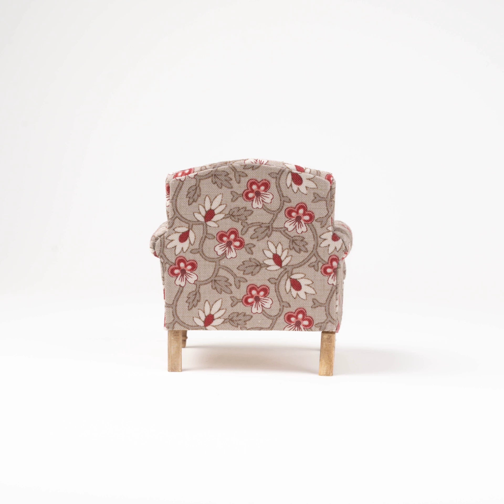 Handcrafted miniature armchair with classic country style backrest and armrests. Faithfully reproduced with accurate proportions and detailed craftsmanship.