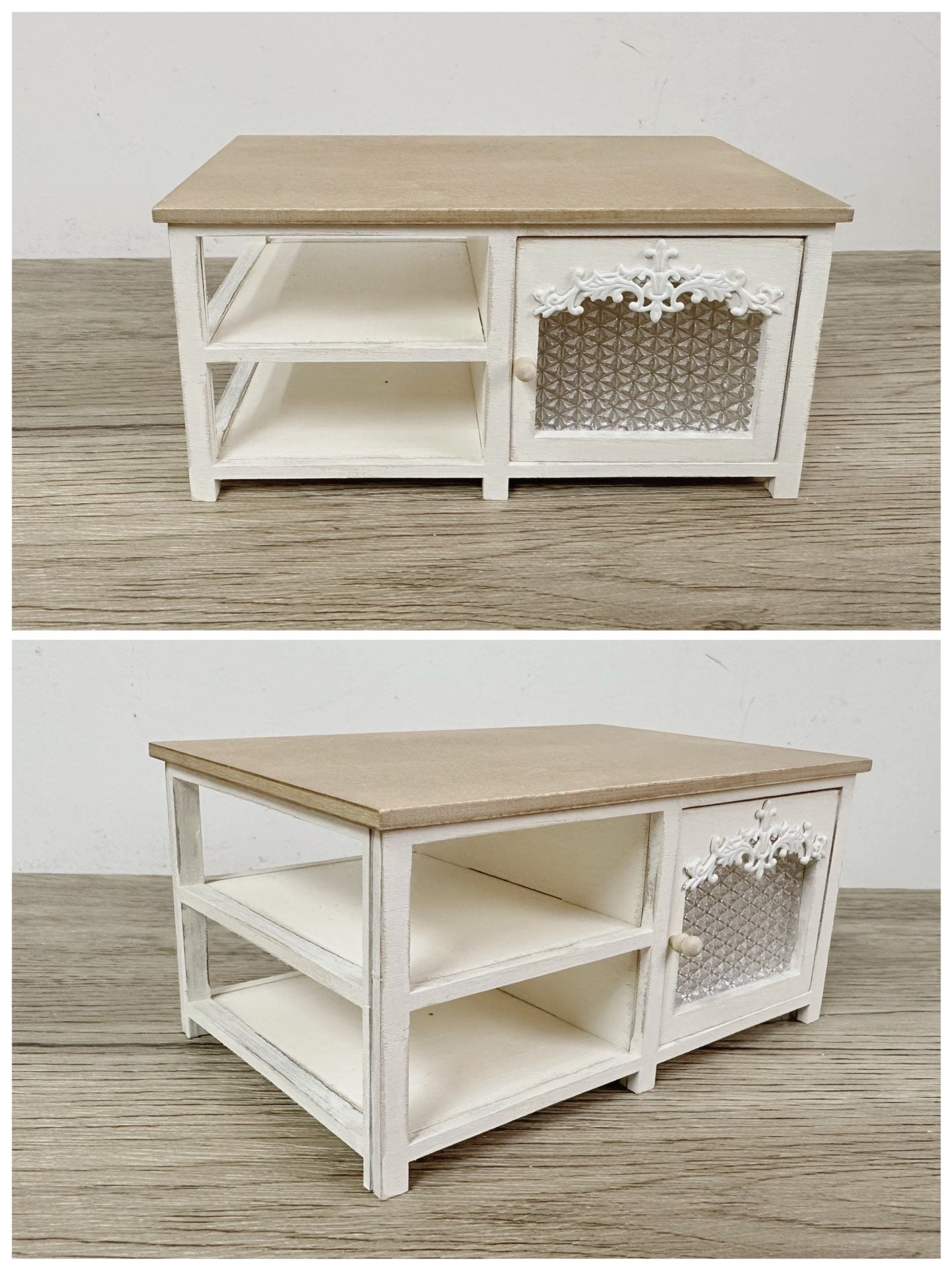 This 1:6 scale miniature wooden cabinet features charming Nordic-style design, perfect for dollhouse enthusiasts. Crafted with fine details, it complements Blythe and OB11 dolls beautifully. The realistic wooden finish adds authentic charm to your dollhouse decor while providing functional storage space.